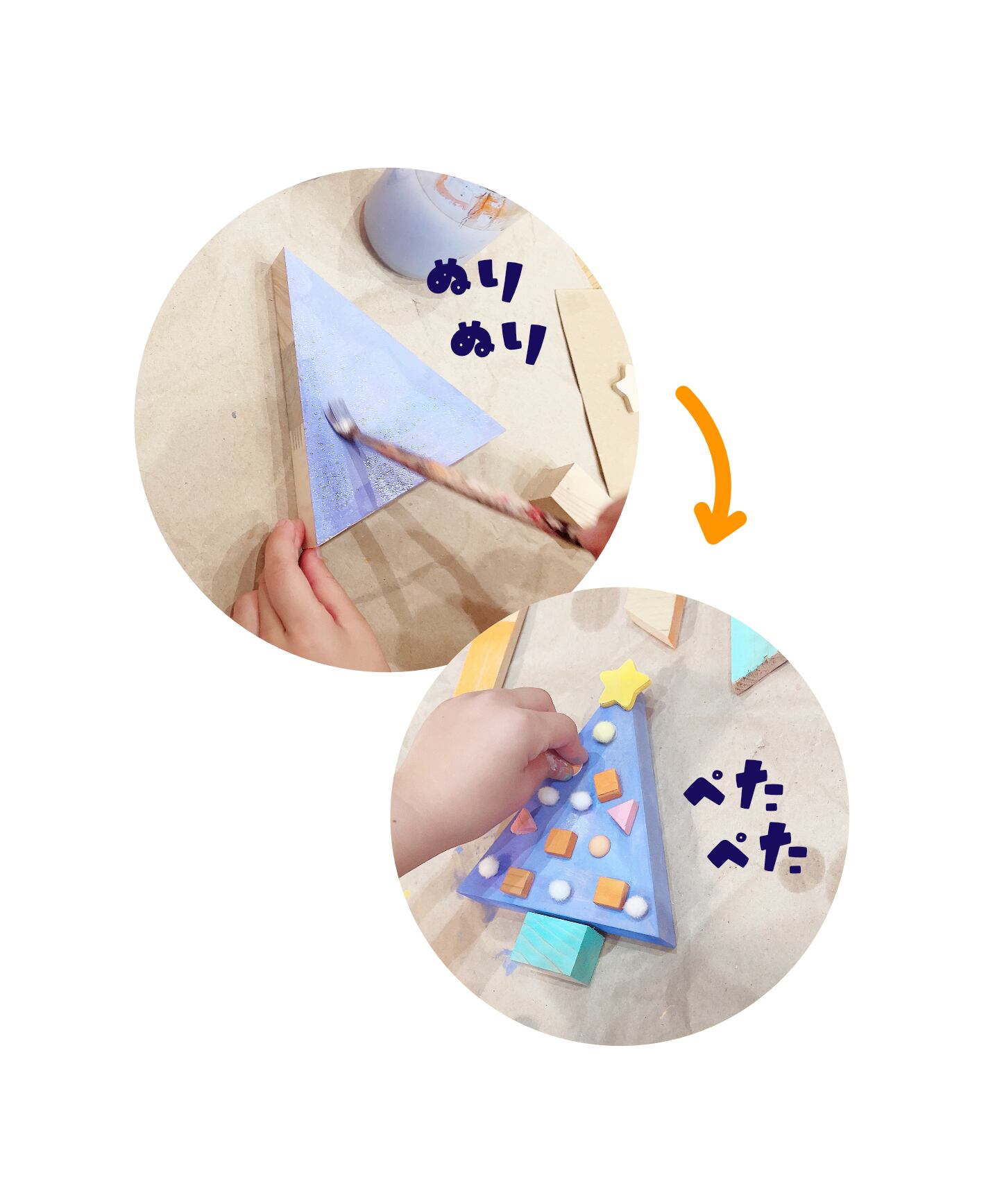 色を塗ったり、飾りつけパーツを貼り付けて、自分だけのオリジナルツリーを作りましょう。