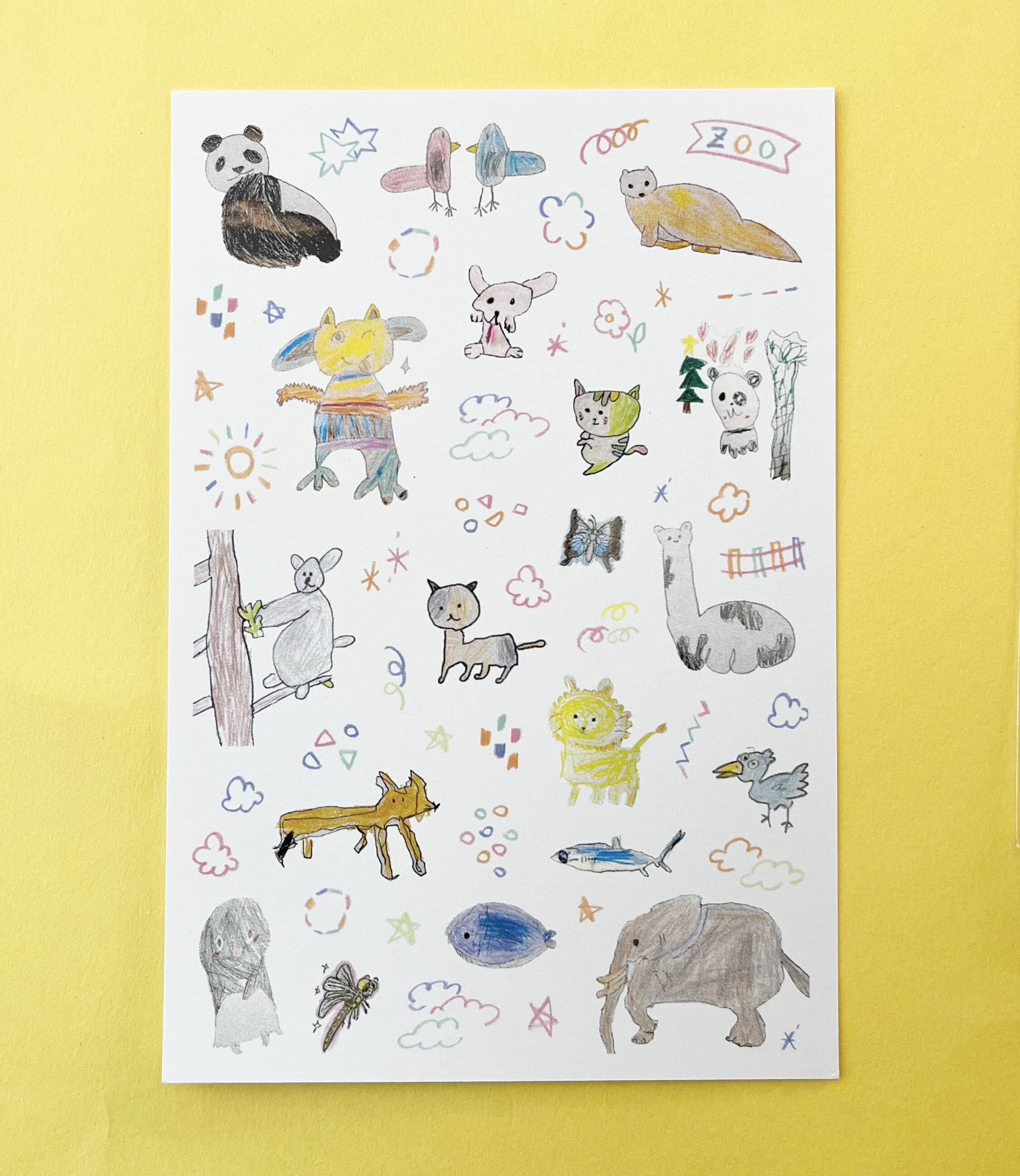 キッズたちが思いを込めて描いた愛らしい「いきもの」たちがデザインされたポストカードです。